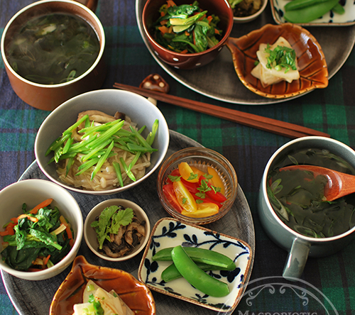 緑いっぱいのプレートに、小鉢とスープで、カフェ盆ランチ。 寒い日こそ、緑多めで。 緑の良質な葉物がたくさん手に入った日は、わくわくするものです。 菜の花など、春の野菜でデトックス効果も高まりますね。 ・・・続きを読む マクロビオティックレシピVol.444~れんこんと木耳と絹さやの中華炒め