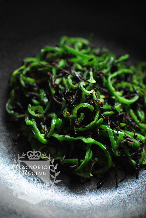 生ひじきを手に入れたので、ピーマンと炒めました。