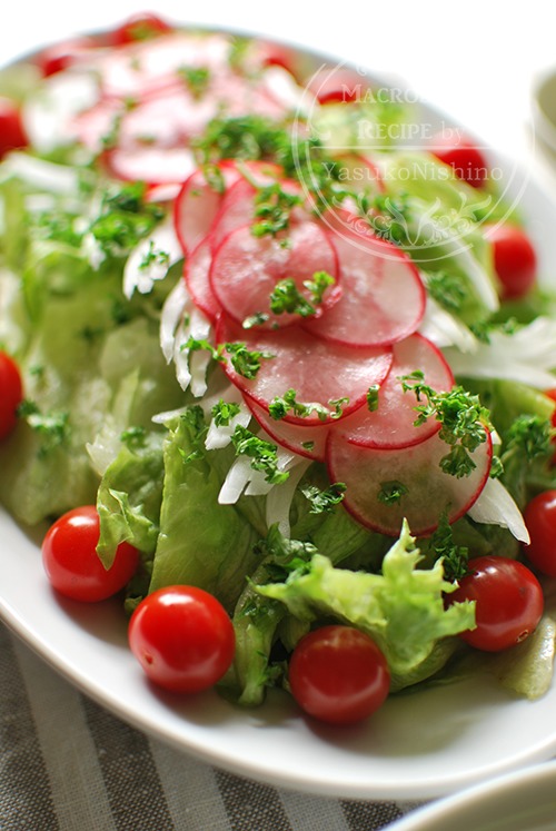 春夏カレーとサラダ。甘くてシャキシャキサラダ。