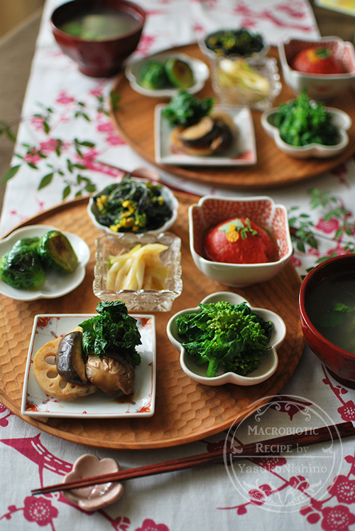 芽キャベツ、紅菜苔、トマト、白ネギ、菜の花、れんこん、椎茸、プチヴェール。