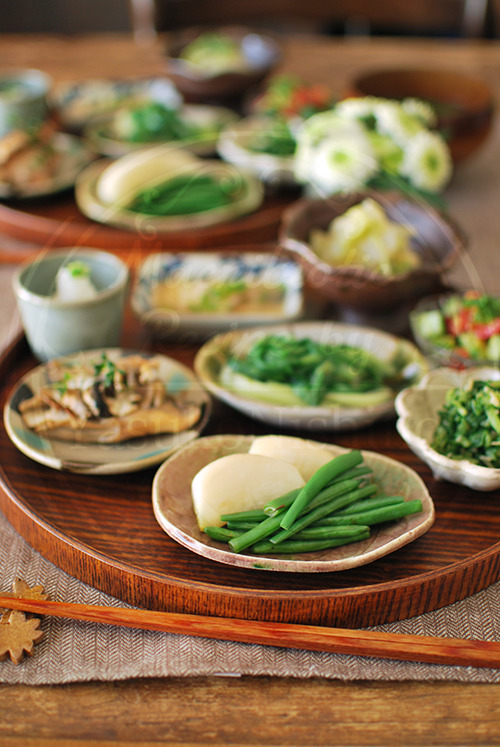 食卓の上も、外の景色と歩調をあわせているかのようです。