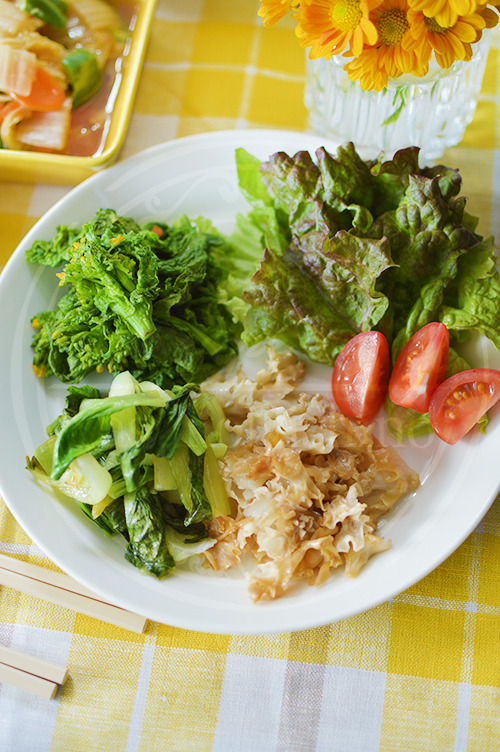 サラダと3種の料理を盛り合わせた、中皿ワンプレート。